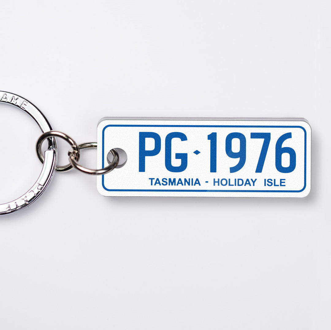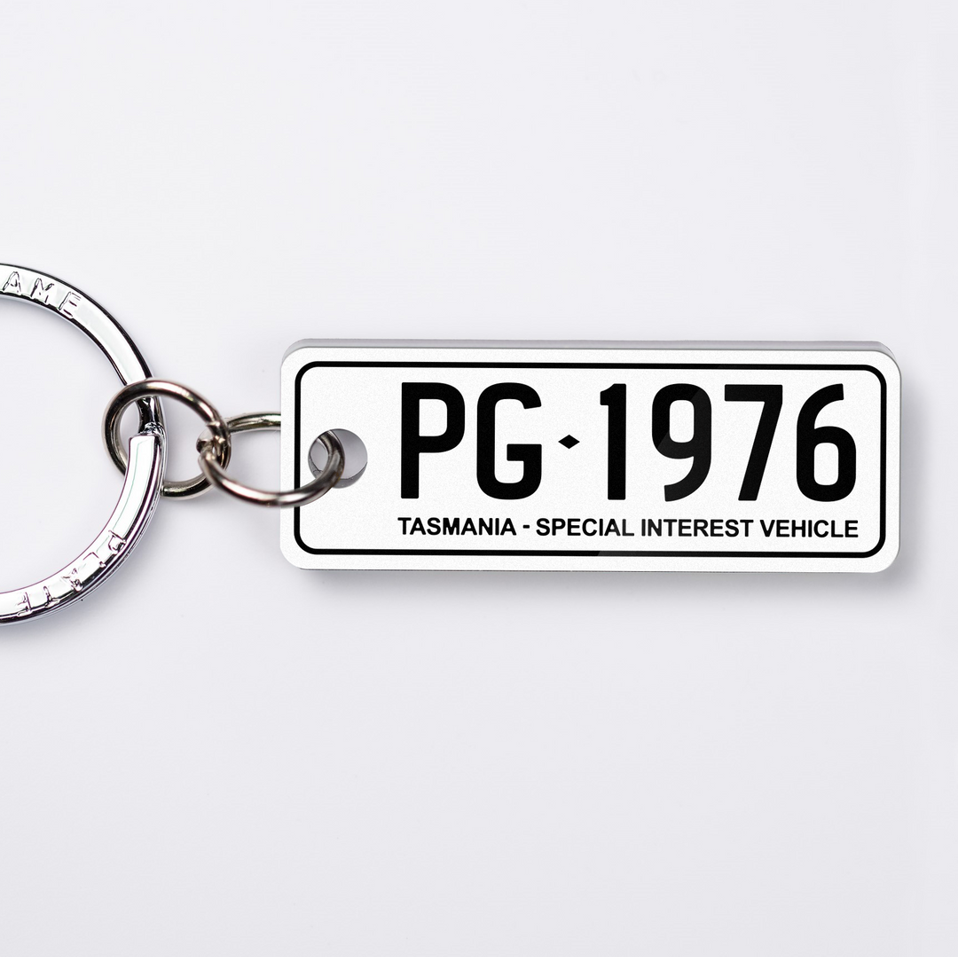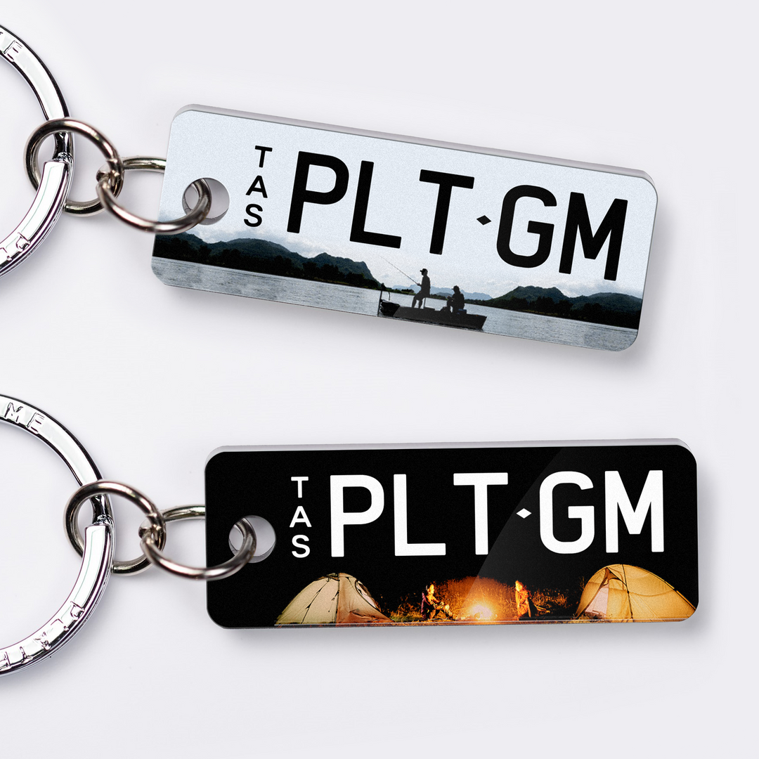 The Tasmanian styles custom keychains are some of the more unique plates being home to the famous TARGA Tasmania. With so many great driving roads the car culture in this state is high!